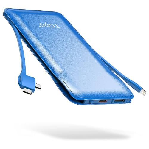 I brought a TG90 10000mAh model on a weekend trip, and it saved me from hunting for outlets more times than I can count. The built-in Lightning and USB-C cables felt like a small miracle—no rummaging in my bag for cords. It charged my iPhone twice and still had juice left, and the slim body slid easily into my jacket pocket. I especially appreciated the AC wall plug version since I could recharge it overnight in the hotel without extra bricks or wires.